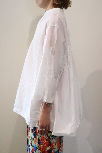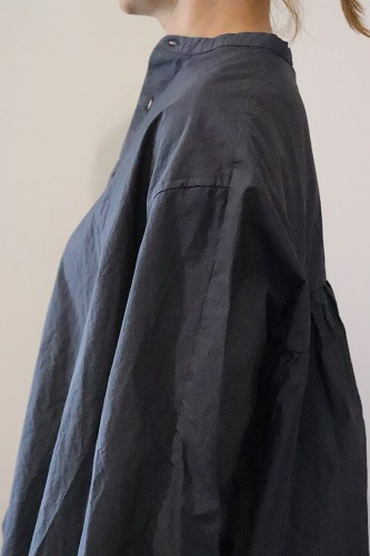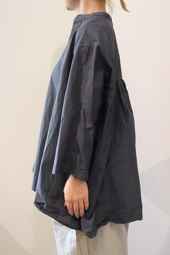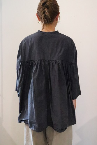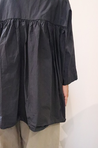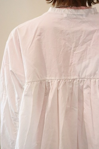 とても細い80番手の超長綿を使用した高密度タイプライター生地のギャザーブラウス。