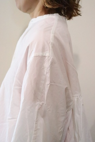 前身頃はシャツスリーブ、後身頃はギャザーの入ったヨークスリーブ。