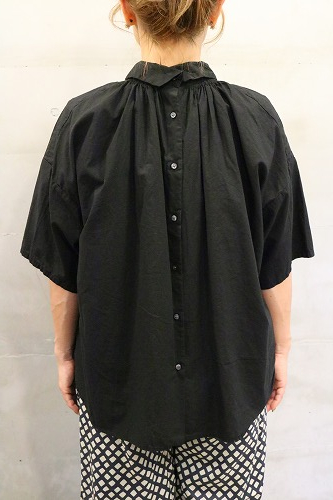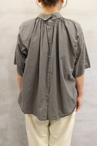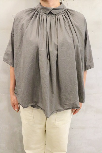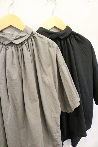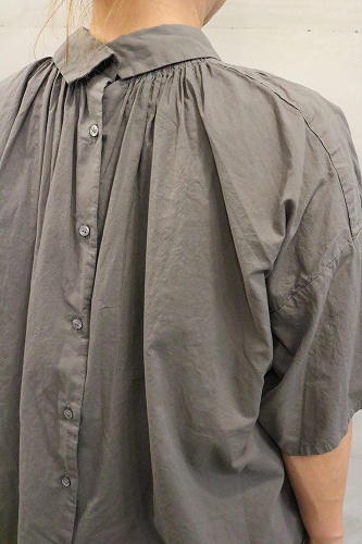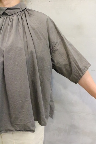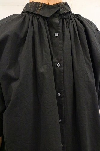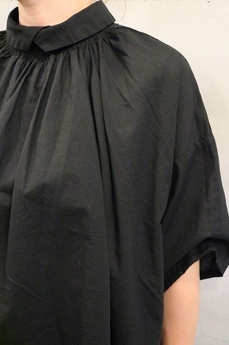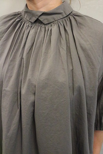 衿ぐりにたっぷりとギャザーを寄せたAラインシルエット。