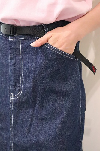 アウトドアの中にも女性らしさを取り入れたグラミチらしいデニムスカート。