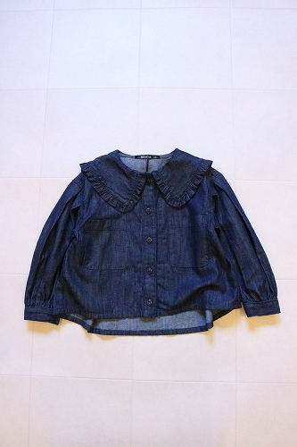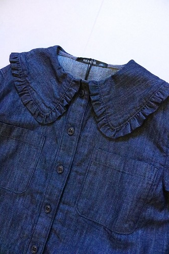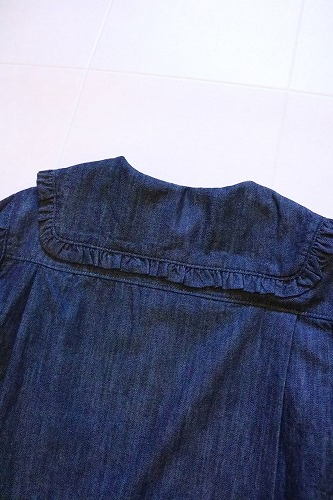 やや大きめの衿回りや、ギャザーフリルやタックをたっぷりと入れた