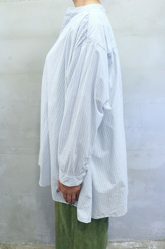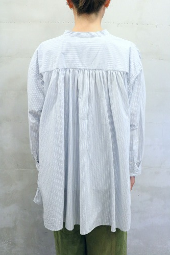 タイプライターストライプ生地をドライタッチでナチュラルな膨らみのある