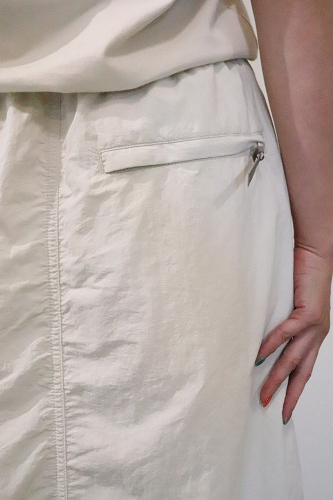 機能性を兼ね備えた薄手のナイロン素材を使ったスカート。