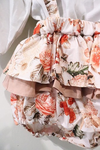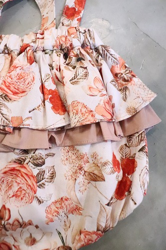 下に重ねた別素材のフリルの色目がアクセントになります。