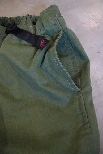 片手で調整できるウェビングベルトとイージーウェスト仕様は、巻込み等の危険があるためフェイクで、内側のゴムアジャスターでのサイズ調整仕様となります。