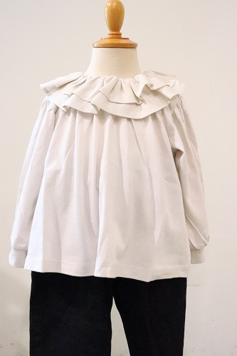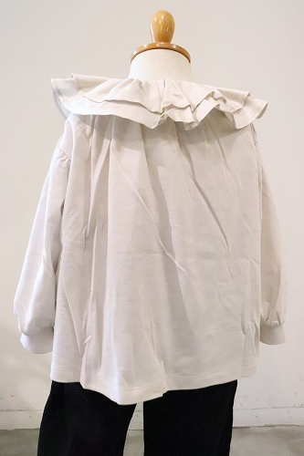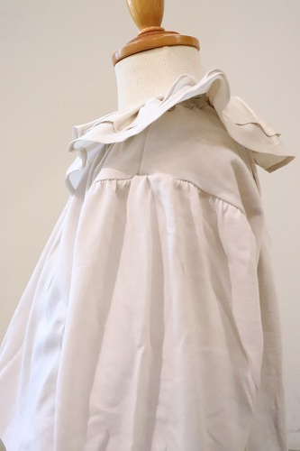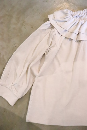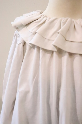 2枚重ねた衿のラッフルフリルに光沢感のある