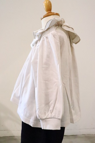 2枚重ねた衿のラッフルフリルに光沢感のある