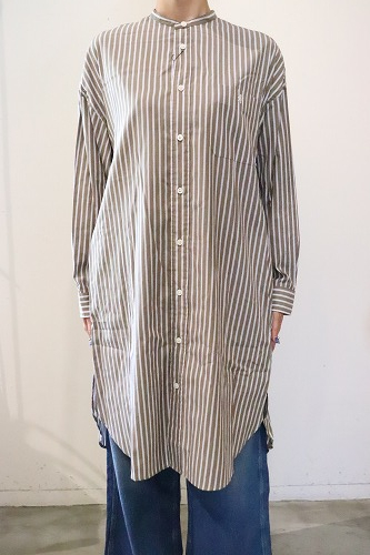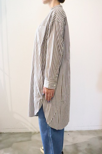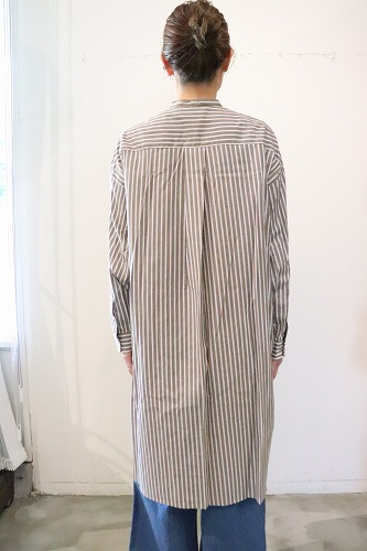 マルチストライプ柄のシャツワンピース。