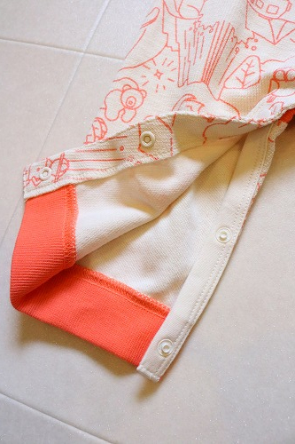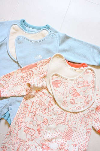 ロンパースは脱ぎ着がしやすいドットボタン仕様。