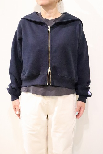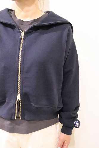 ヴィンテージのスウエットのデザインを元にした定番のジップバーカーをセーラーカラーにデザイン。