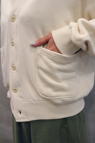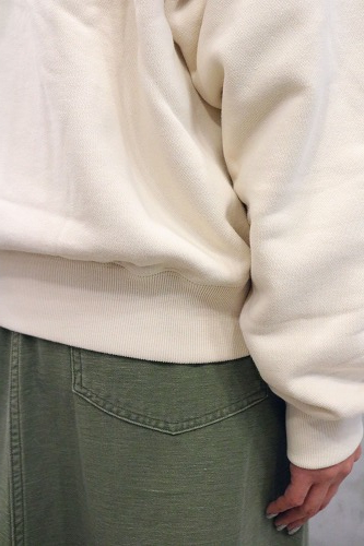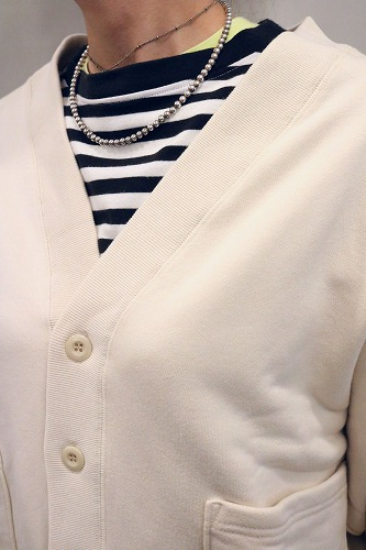 シンプルなVネックで、腕周りや身幅はゆったりしつつも