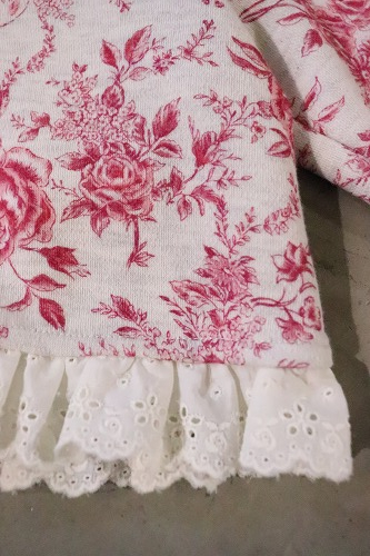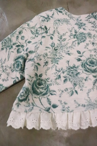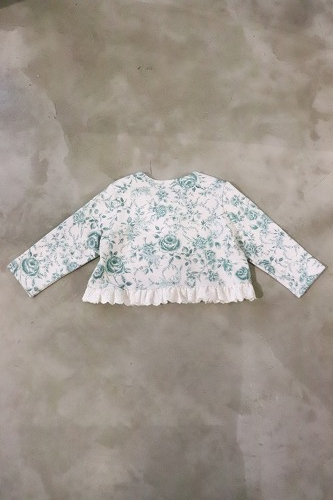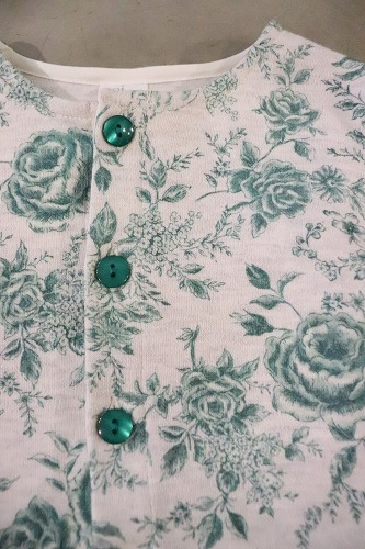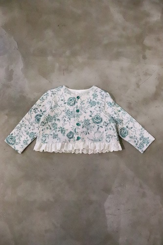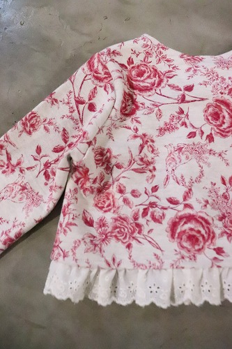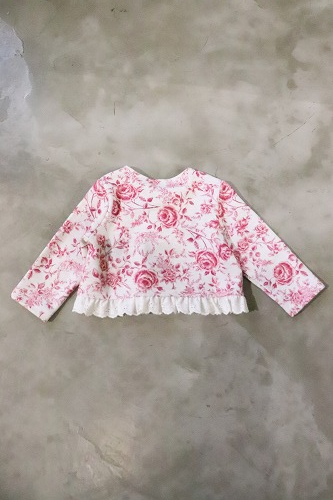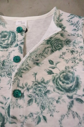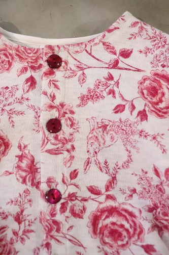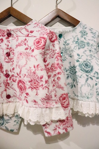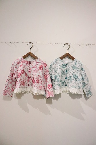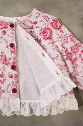 オリジナルのトワルドジュイ柄のカットソーを使ったシンプルなbabyカーディガン。