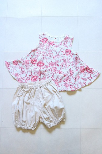 フレアーシルエットにペプラムフリルのBABYセットアップ。