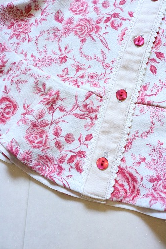 トワルドジュイと同色染めしたボタンがアクセントになっています。