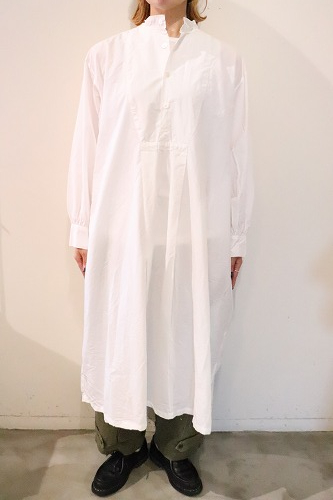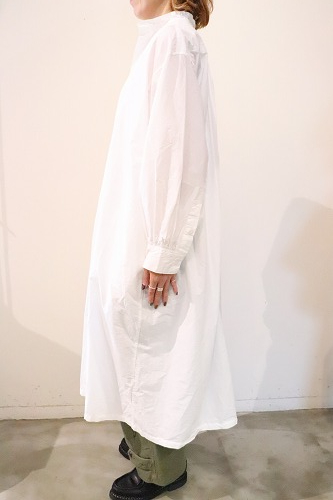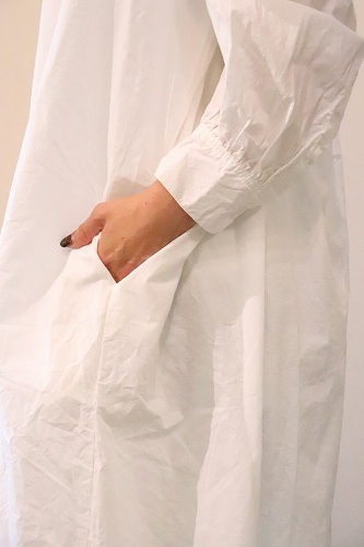 たて糸に滑らかなコットンのコンパクトヤーン、よこ糸にコットンリネンの混紡糸を使用したシャツワンピース。