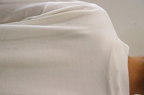 ゆったりとしたシルエットとドロップショルダーのデザインで、リラックス感のある着心地
