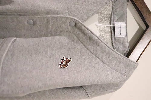 SKATEDOG(スケボー犬)のミニワッペンが付いたスウェット地のカーディガンです。