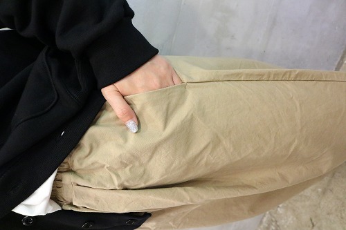 フロントにタックを配し、腰回りにゆとりを持たせたリラックスフィット。