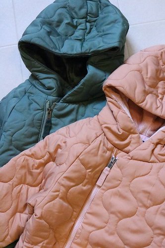 ツイル素材を使用した寒い天候から守るキルト加工のシェル。