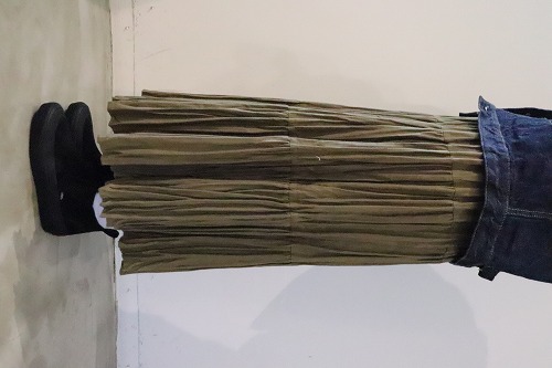 シルエットはティアードと呼ばれる複数の生地を段々に重ねることで