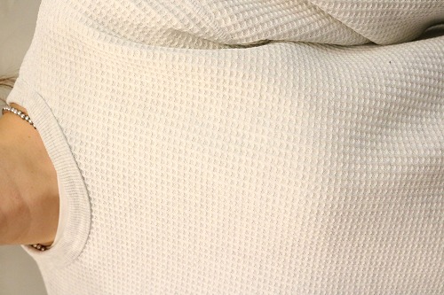 凹凸のあるワッフル生地特有の通気のよさが特徴で、