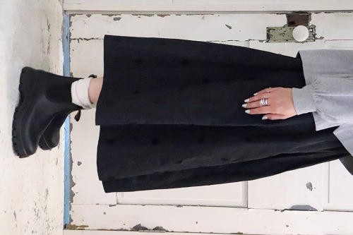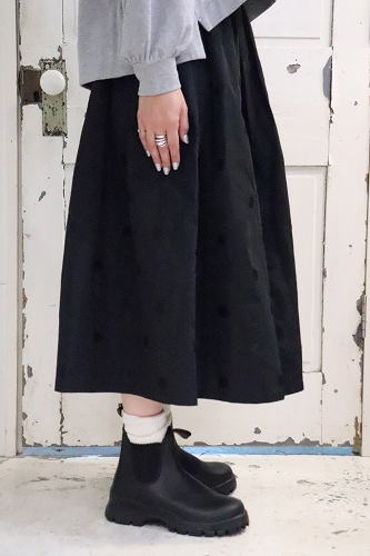 さらりとしたドライな質感と、軽い着心地が魅力のスカート。