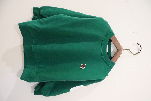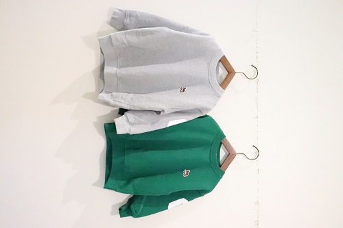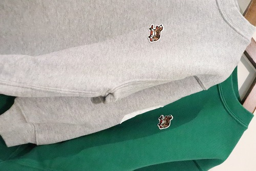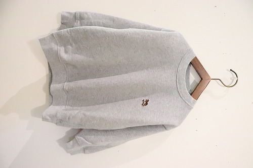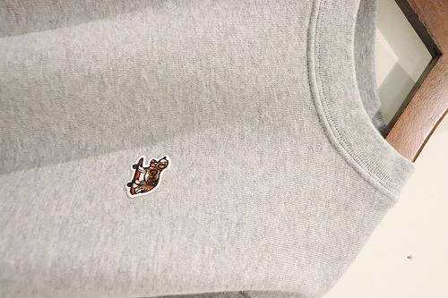 SKATEDOG(スケボー犬)のミニワッペンが付いたスウェットシャツ。