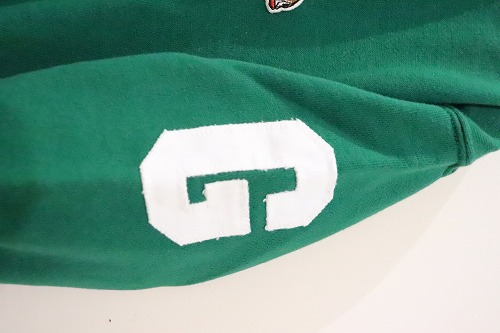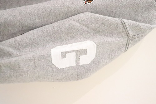 BACKはロゴプリント、左袖にはGのアップリケ。