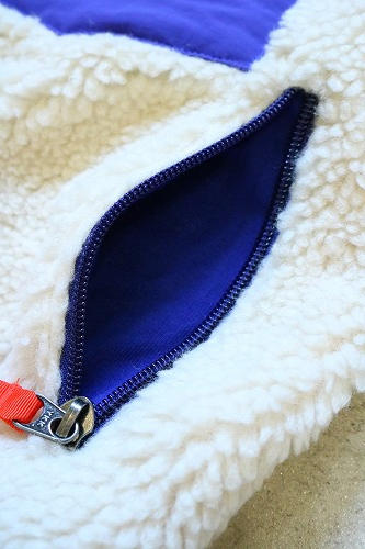 襟、ポケット、フロントジッパーの縁はコントラストになるすっきりとした仕上がり。