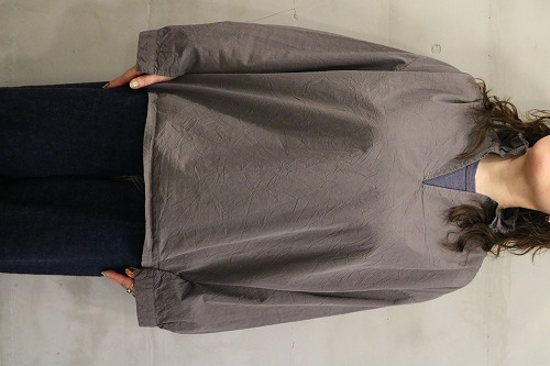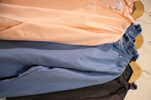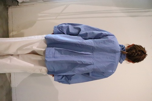身頃にも随所にタックやギャザーが寄せられ、ふんわりとした A ラインのシルエットになっています。
