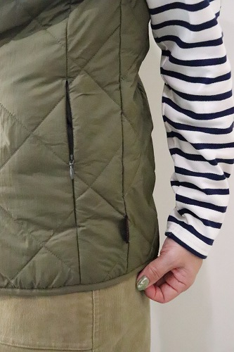 表地には、軽く柔らか、また撥水機能を備え、軽度の雨には対応する高密度リップストップを使用。軽く、弾力を持ち通気性にも優れた中綿は、蒸れを軽減し暖かさを保ち、