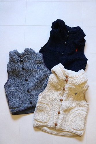 左胸のグリフィンマーク刺繍が上品さを漂わせるボアベスト。