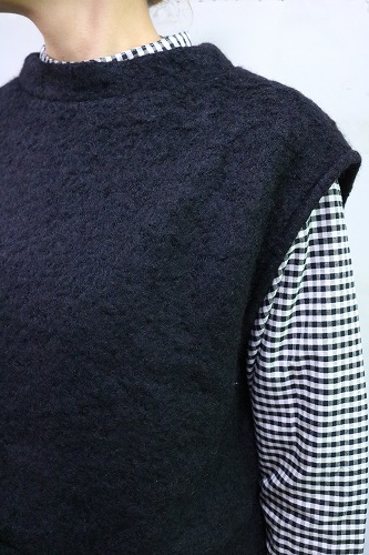 フワッとした柔らかな風合いのモヘアシャギーを使ったベスト。