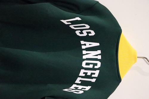 背中にも同じフォントによるグラフィックをラバープリントで入れています。