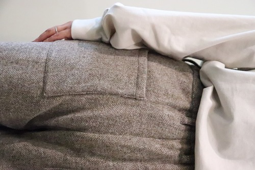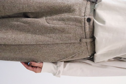 色んなトップスにも合わせやすいBeigeヘリンボン柄