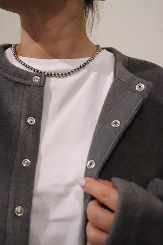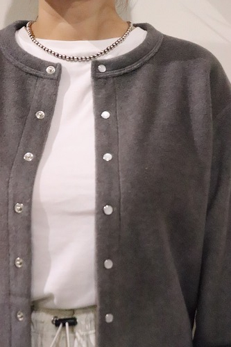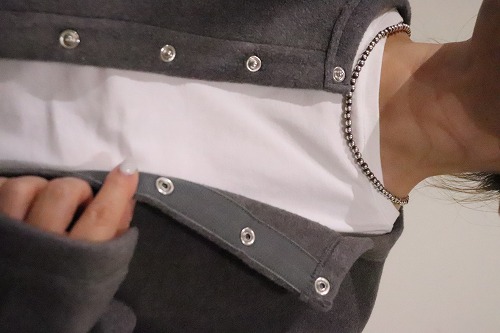スナップパールボタンにフロント裾にロゴ刺繍あり