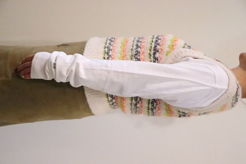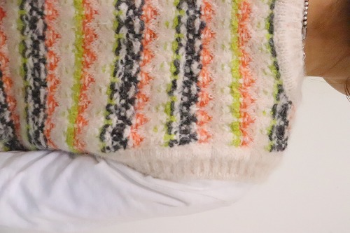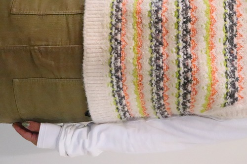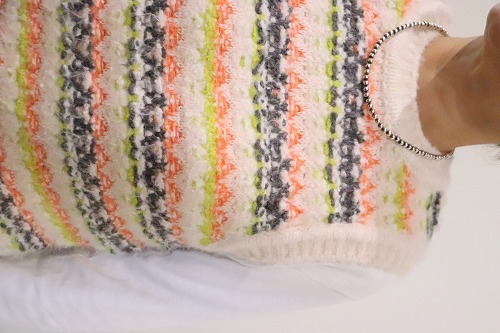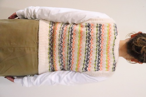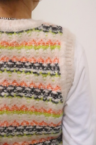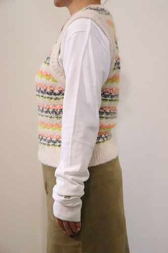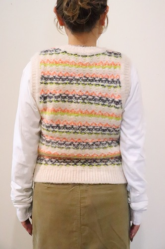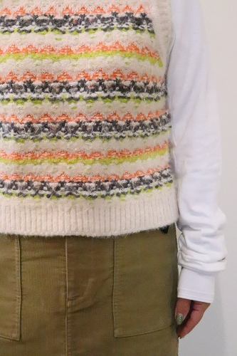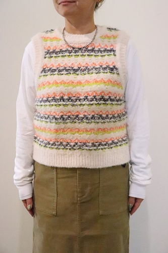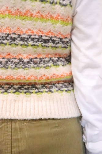異なる3素材を交編したオリジナルジャカードニットベスト。