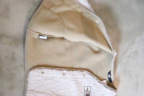 肌面には滑らかな肌触りのマイクロフリースをボンディングした生地を採用しています。
