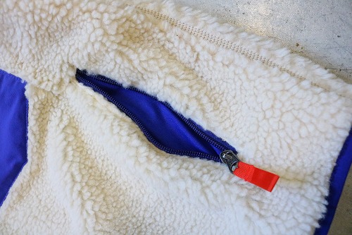 襟、ポケット、フロントジッパーの縁はコントラストになるすっきりとした仕上がり。
