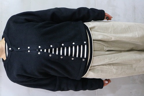 スナップパールボタンにフロント裾にロゴ刺繍あり