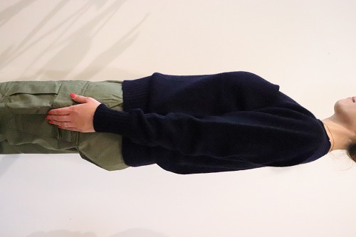 仕上げられたN.O.UN定番ポケット付きセーター。