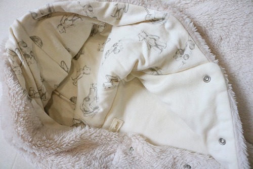フードの内側にはロンパースにも使われている、